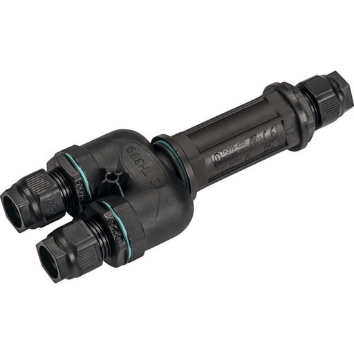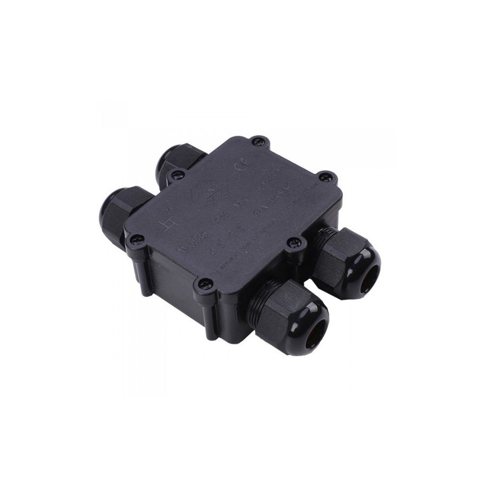 T-kopplingsdosa med snabbkoppling - IP68 vattentät, svart, för skarvning av kablar, 3-ledare