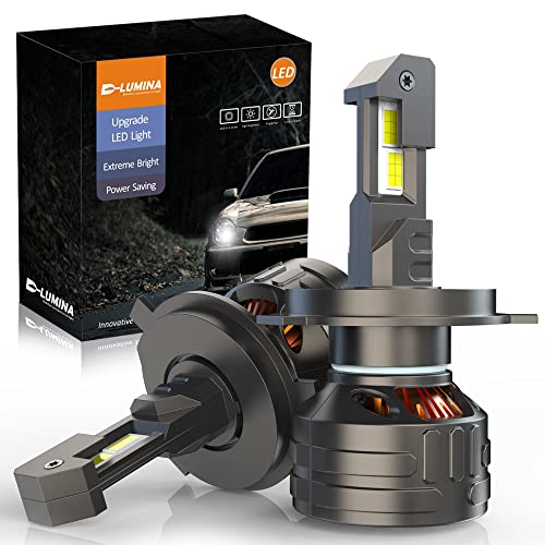 D-Lumina H4/9003 LED-lampor Futura-serien, 120W 30000LM Hög Lumens 6500K Vit LED-kit, IP68 vattentätt och avancerat kylsystem, Ersättningshalogenuppgradering, 2-pack