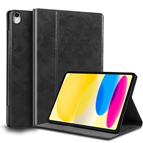 Gexmil Fodral för iPad 10,9 Tum,10:e Generationen(2022) Cover,Real Leather Case Automatyczne Usypianie/Czuwanie,Regulowany Stojak,Halkskydd,Anti-fingeravtryck,Oil Wax Black