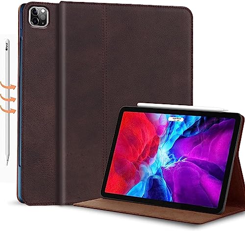 Gexmil Fodral för iPad Pro 12,9 Tum,6:e/5:e/4:e/3:e Generationen(2022/2021/2020/2018) Cover,Real Leather Case Automatyczne Usypianie/Czuwanie,Regulowany Stojak,Anti-fingeravtryck,Sand Dark Brown