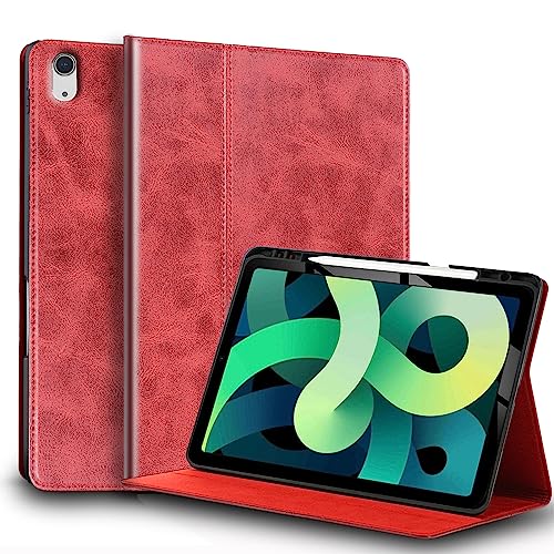 Gexmil Fodral för iPad 10,9 Tum,10:e Generationen(2022) Cover,Real Leather med Pennhållare,Automatyczne Usypianie/Czuwanie,Regulowany Stojak,Halkskydd,Anti-fingeravtryck,Oil Wax Red