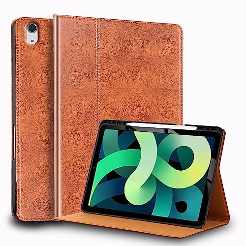 Gexmil Fodral för iPad Air 10,9 Tum,5:e/4:e Generationen(2022/2020) Cover,Real Leather med Pennhållare,Automatyczne Usypianie/Czuwanie,Regulowany Stojak,Halkskydd,Anti-fingeravtryck,Oil Wax Brown