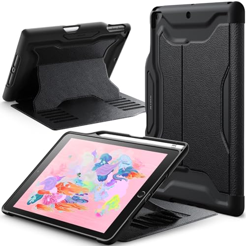 JETech Fodral för iPad 9,7 Tum 2018/2017 (6:e/5:e Gen) med Pennhållare, Skyddande Magnetiskt Stativ med Flera Vinklar, Stötskyddad (Svart)