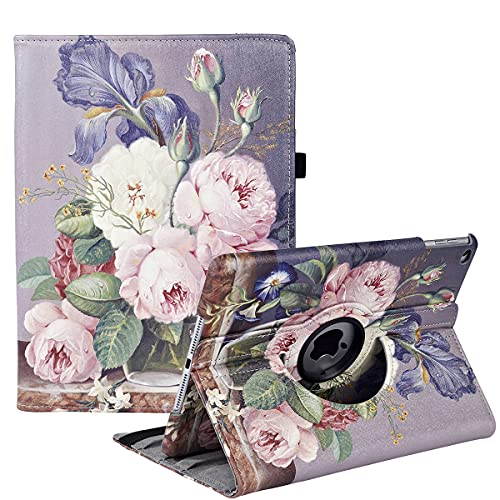 Roterande skal för iPad 9,7 tum 6:e gen, 5:e gen/iPad Air 2/iPad Air – 360 graders roterande stöd, skyddsskal med automatisk vila/vakna för iPad 9.7 2018 2017/iPad Air 2/iPad Air (pionblomma)