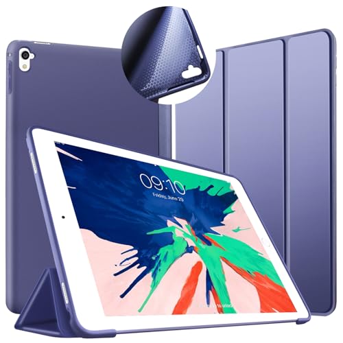 VAGHVEO Fodral för iPad Pro 9,7 Tum ultratunt Lätt Skal Trippelvikt Stativ Skyddande Case Hölje Omslag Väskor [Automatisk Sömn/Väcknings], Flexibelt mjukt TPU-Bakskydd för iPad Pro 9.7 2016, Mörkblå