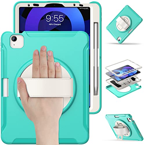 A-BEAUTY Barnfodral Kompatibelt med iPad 9,7 Tum (6:e/5:e Generationen 2018/2017)/iPad Pro 9.7/Air 2/Air, Stötsäker Silikon Capybara Fodral z Pencil Uchwyt, Handtagstativ, Axelrem
