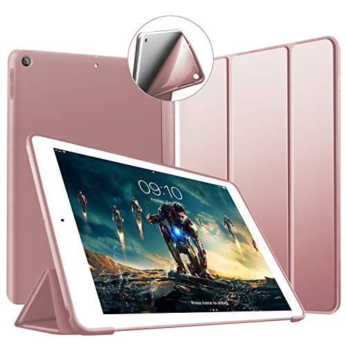 VAGHVEO Fodral för iPad 9,7 Tum 2018/2017 (6:e/5:e generationen) Case, Lätt Skal Trippelvikt Stativ Skyddande Hölje Omslag Väskor [Automatisk Väckning/Sömn] med Flexibelt mjukt TPU-Bakskydd, Roséguld