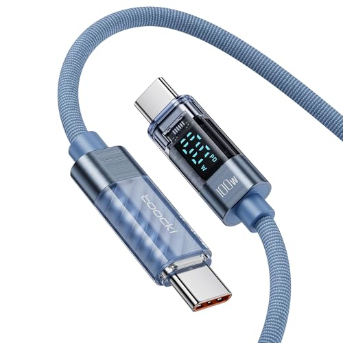 Toocki 100W USB-C Kabel 1m med LED-skärm, PD QC5.0 Snabbladdningskabel i Nylon för Phone MacBook Pro Air, iPad Pro Air, Galaxy S24 S23 Pixel