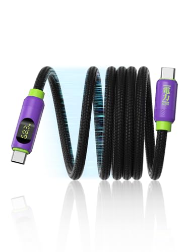 Hagibis Magnetisk USB C-kabel, LED-skärm 240 W snabbladdningskabel med 480 Mbps dataöverföring, typ C-kabel för iPhone 16/15 Pro Max, iPad, MacBook Pro Air (lila, 6,6 fot)