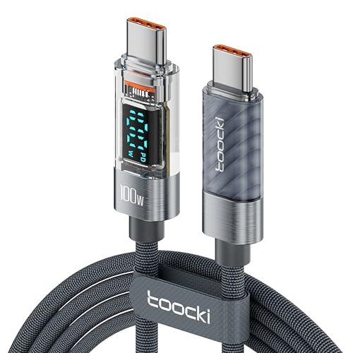 toocki 100W USB C till USB C Kabel, 1M 5A snabbladdningskabel PD QC5.0 med LED-skärm, kompatibel med iPhone 15/15 Pro/15 Pro Max MacBook Pro Air iPad Pro Air Galaxy S24 S23 Pixel Switch
