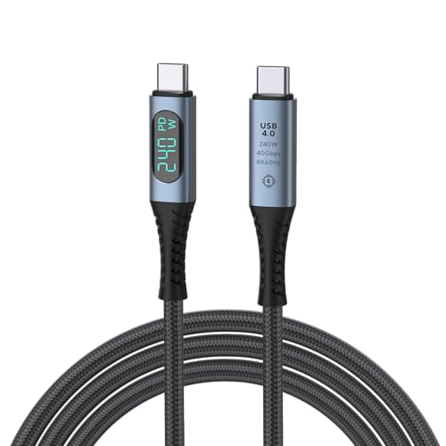 SlimQ 240 w 40 gbps USB C till USB C snabbladdningskabel med LED-skärm 48 V/5 a) PD 3.1, nylonflätad typ C-kabel, bärbar dator datakabel för Macbook Pro/Air/Ipad/Google/Hp/Lenovo/Samsung