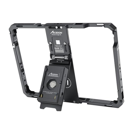 Accsoon PowerCage Ⅱ Skyddsbur för iPad (Gen 7,8,9,10)/Air 3,4,5, iPad Pro 9.7/10,5/11 tum Gen 1,2,3,4) med NP-F-batterikoltadapter som en on-kamera-skärm, används med SeeMo/SeeMo Pro/Nano