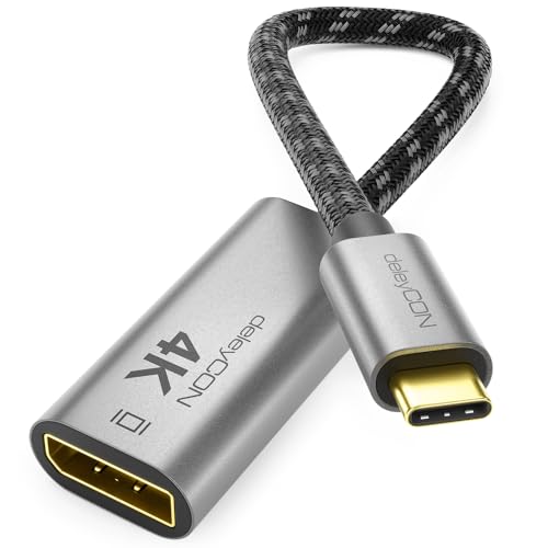 deleyCON 4K USB-C till DisplayPort Adapter för Skärm (4K@60Hz) av Aluminium, Thunderbolt 3/4, iPhone 17 16 15 Pro Max Air, MacBook, iPad Pro/Air, Galaxy S25 S24 S23, Notebook, Surfplatta