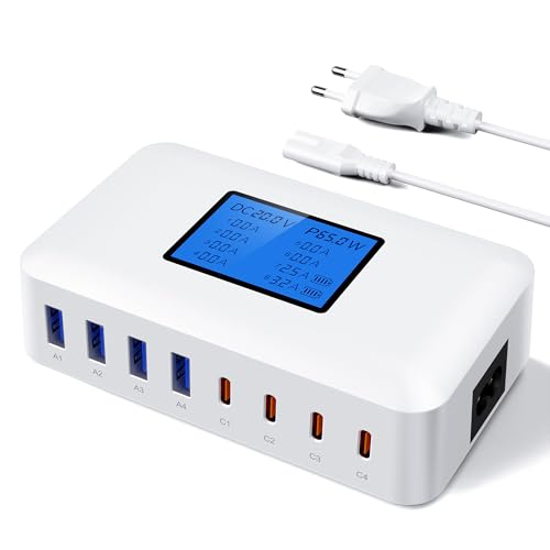 200W USB-laddare med flera portar, 8 portar USB C-laddare med PD 65W och QC 18 W, snabbladdningsstation med LCD-skärm, kompatibel med MacBook Pro/Air, iPhone 16/15/14 Pro Max, iPad, Samsung S24/S23