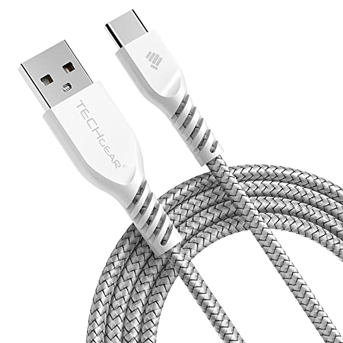 TECHGEAR 2 Meter stark flätad USB-C kabel laddare och data synkkabel USB typ C kompatibla med Apple iPad Pro 12,9 & iPad Pro 11 2020/2018 iPad Air 4 Generation 10.9 tum USB Cable charger [Vitt]