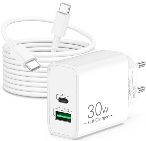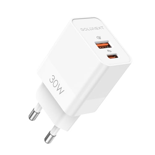USB C Laddare 30W, GOLDNEXT 2-Ports Snabbladdare Strömadapter, PD/QC 3.0 (PPS 25W) Väggladdare USB-C Charger för iPhone 16/15 Pro Max/15 Plus/14 Pro/13, iPad, Galaxy S24/S23, Google Pixel 9/8 Pro/7/6a