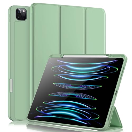 Vobafe Fodral för iPad Pro 12.9 fodral 6:e/5:e/4:e/3:e generationen, TPU flexibelt bakskydd med pennhållare för iPad 12.9 Pro 2022/2021/2020/2018, stöder penna 2-laddning, matcha grön