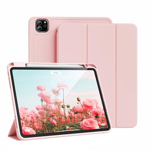 GKABXY fodral för iPad Pro 11 tum 4,/3/2. Generation (2022/2021/2020) med pennhållare, smalt trifold smart skydd, stöder laddning av penna 2, automatisk sömn/vakning, ros