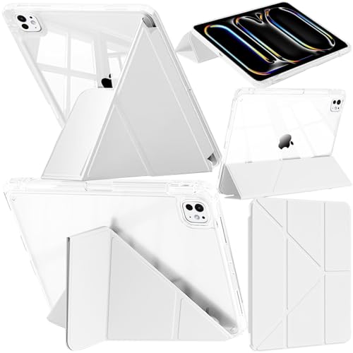 Fodral Kompatibelt med iPad Pro 13 Tum M4 (2024) med Pennhållare, Stötsäker Klart Skydd, 6-i-1 Y-format Stand, Stöd för Penna Pro/Pencil (USB-C), Auto Väckning/Sömn, Vitt