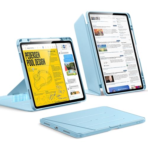 ESR för iPad Air 13 tum M4/M3/M2-fodral (2026/2025/2024) och iPad Pro 12,9 (2022/2021/2020), magnetfäste, tunt trippelfällbart ställ, stöder penna Pro/USB-C, rebound, blå