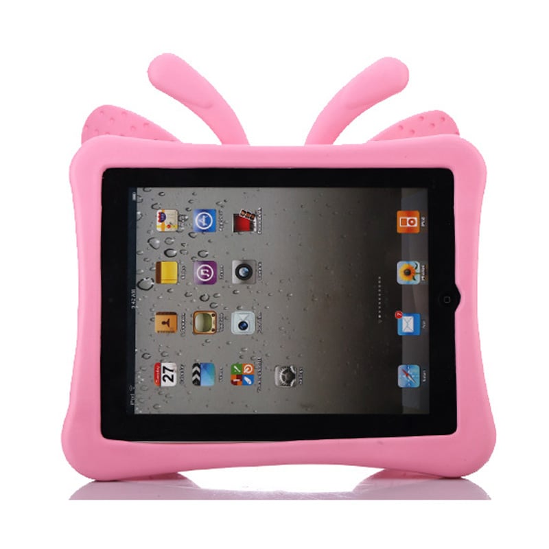 Fjärilsformat barnfodral till iPad 2/3/4, ljusrosa