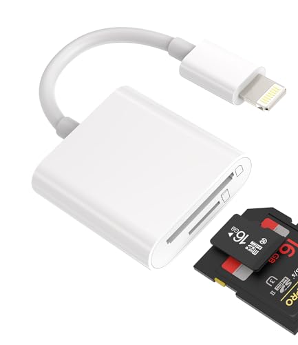 SD-kortläsare för iPhone iPad, Oliveria Trail Game-kamera 2-i-1 SD-kortvisare med dubbla fack för MicroSD/SD, fotominneskortsadapter, samtidig laddning och kortläsning, Plug and Play