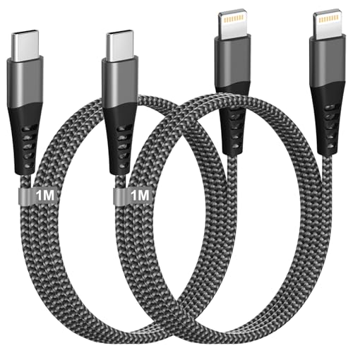 USB C till Lightning-kabel 1 m 2-pack [Apple MFi-certifierad], snabb iPhone-laddningskabel, Lightning, USB C, iPad, laddningskabel, 1 m, nylon, iPhone-laddningskabel, ledtråd för iPhone 14 Pro/13/12