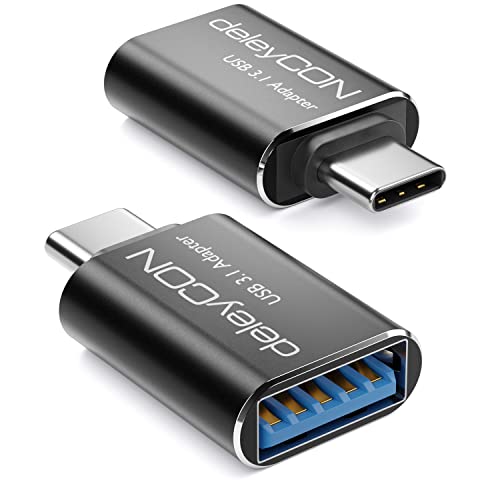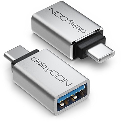 deleyCON USB-C till USB Adapter USB 3.0 (2 Stycken) - Mobiltelefon OTG Adapter 5 Gbit/s Thunderbolt 3/4 för iPhone 16 15, Galaxy S25/S24/S23, MacBook, IPad, IMac, Surface, Notebook, PC, Laptop, Silver