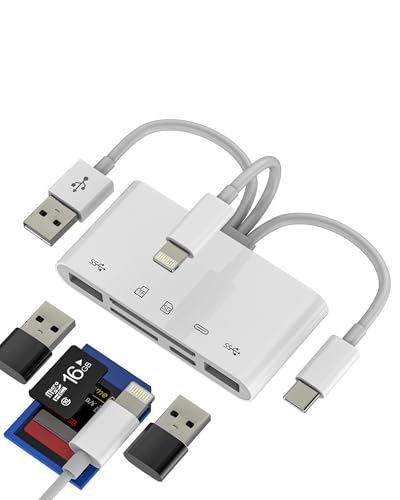 USB C Lightning USB-adapter (5 in1) OTG 3.0 SD-kortläsarkabel för Apple iPhone 15 14 Micro SD-kortläsare TF-minne minne iPad PC adapter minneskamera kompatibel för Samsung