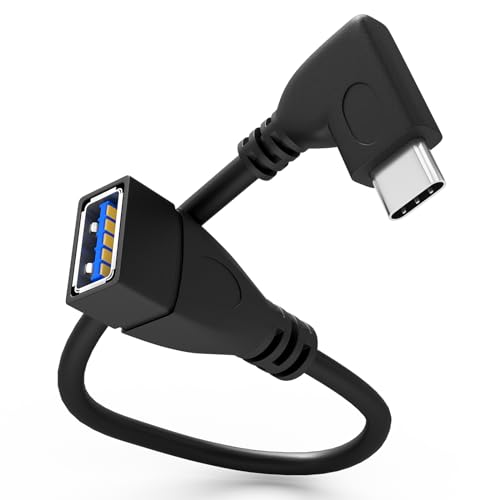 hb-digital USB-C 3.0-adapter till USB-A-uttag, ca 16,5 cm, vinkelkontakt, 90° OTG 5 Gbit/s SuperSpeed-kabel kompatibel med iPhone, MacBook, iPad, Galaxy, Huawei, Redmi Note etc PVC svart