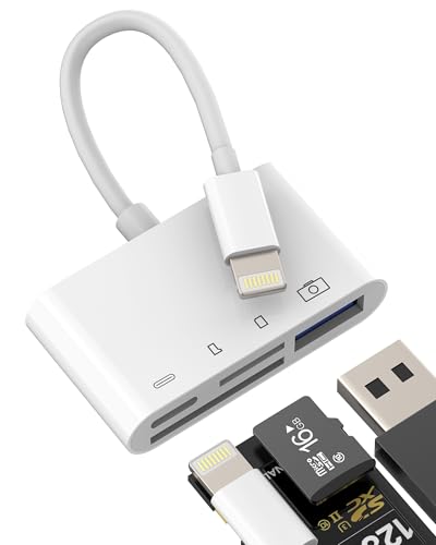 SD-kortläsare för iPhone iPad, SD-kortläsare för iPhone/iPad/kamera, SD-kortläsare USB C samtidig laddning, kortläsare med Micro SD/SD/USB OTG-adapter, SD-kortläsare iPhone, minneskortläsare