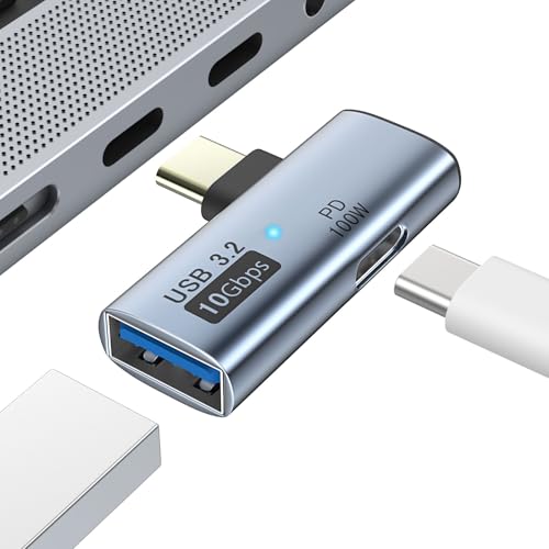 MoKo 2 in 1 USB C to USB 3.2 Adapter with Type-C Charging Port, USB C Male to USB Female Adapter OTG Converter for ROG Ally, Steam Deck, Quest 2, iPhone 15 Series, iPad, MacBook Type C Devices, Gray
