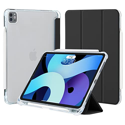 4UBonLife Fodral för iPad Pro 11 tum 2022/2021/2020/2018 (4:e/3:e/2:a/1:a Generationen), Smalt Lätt Case Cover med pennhållare, Mjuk TPU Baksida Skal, Stöder 2:a Pencil Laddning-Svart