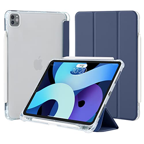 4UBonLife Fodral för iPad Pro 11 tum 2022/2021/2020/2018 (4:e/3:e/2:a/1:a Generationen), Smalt Lätt Case Cover med pennhållare, Mjuk TPU Baksida Skal, Stöder 2:a Pencil Laddning-Mörkblå