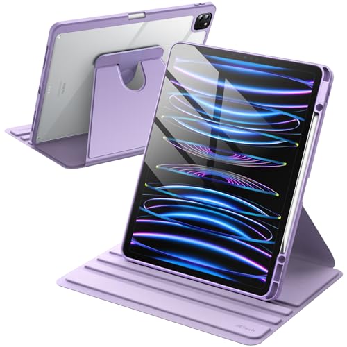 JETech Roterande Fodral för iPad Pro 12,9-Tum (2022/2021/2020/2018) med Pencil Hållare, 360 Grader Roterande Skyddande Stand Case Klar Tillbaka, Automatisk Väckning/Sömn (Ljuslila)