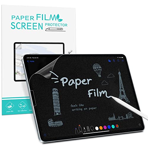 [2 stycken] Paper-Feel Screen Protector för iPad Pro 12.9" 2018/2020/2021 - Matt TPU-film för att skriva och rita som på papper, kompatibel med Apple Pencil & Face ID