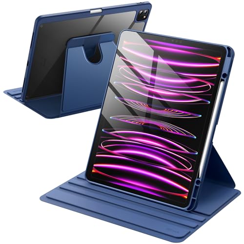 JETech Roterande Fodral för iPad Pro 12,9-Tum (2022/2021/2020/2018) med Pencil Hållare, 360 Grader Roterande Skyddande Stand Case Klar Tillbaka, Automatisk Väckning/Sömn (Marin)