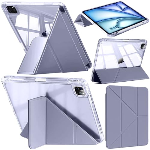 Fodral Kompatibelt med iPad Air 13 Tum M2 (2024)/iPad Pro 12.9 2022/2021/2020/2018 med Pennhållare, Stötsäker Klart Skydd, 6-i-1 Y-format Stand, Stöd Pro/Pencil (USB-C), Lavendel