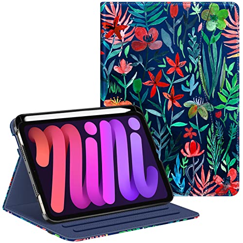 Fintie Fodral kompatibelt med iPad Mini 6:e generationen (2021-modell, 8,3 tum), [flervinkelvisning] folio smart stativ fodral med pennhållare och ficka, automatisk sov/vakna, blomma