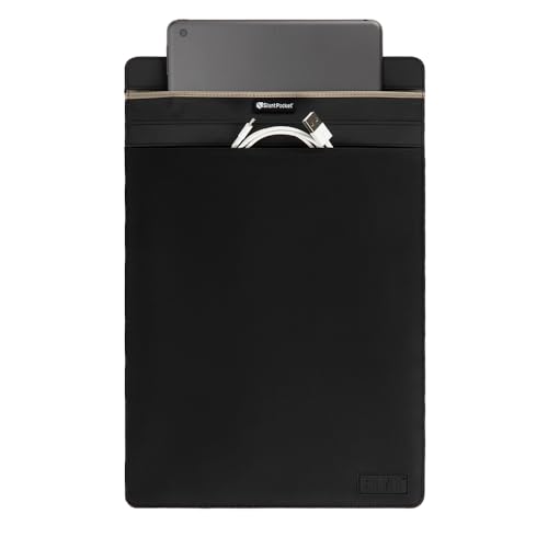 SLNT Faraday-väska surfplattefodral med tyst ficka – läder eller vattentät nylon, signalblockerande enhetsskydd för iPad, Samsung Galaxy Tab, de flesta surfplattor, resor, integritet (svart nylon