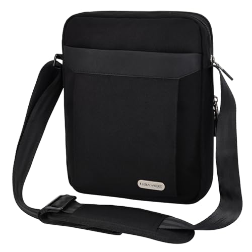 UBAYEE Män Axelväska för iPad Surfplattor upp till 10,5 Tums (25 cm), Tablettfack, Flerfickor, Vattentät, Liten (Svart)