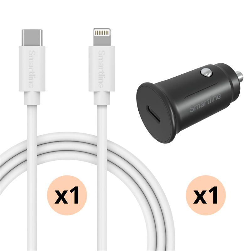 Komplett Billaddare iPhone 11 - 1m sladd & laddare Lightning - Smartline