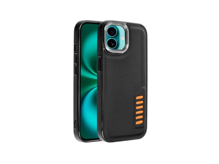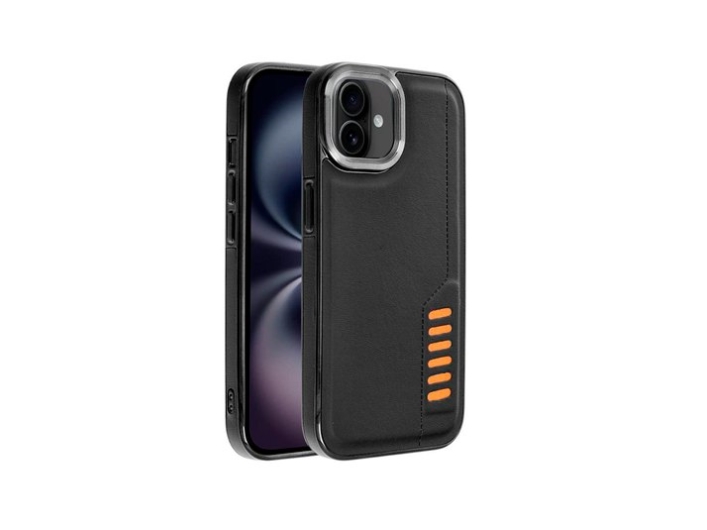 Cool Iphone 16 Plus Milano Case, Black Leatherette/Raised Edges/Wireless Charging 8434847076010