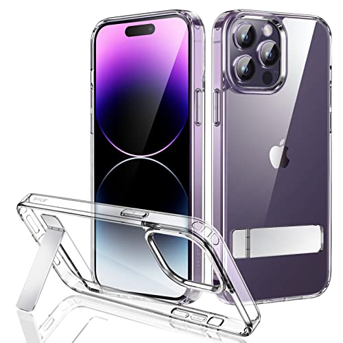 JETech Stativ Skal för iPhone 14 Pro 6,1 Tum, Stöd Trådlös Charging, Smal Case Stötskyddad Fodral, 3-Vägs Stativ i Metall (Klar)
