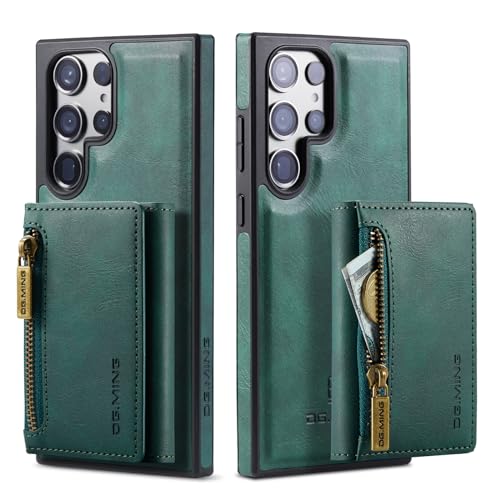 UDBKKDX 2 in 1 fodral för iPhone 11, StöDer TråDlöS Laddning Magnetisk Adsorption Premium LäDer Dragkedja Visningsstativ KorthåLlare StöTsäKert Skydd Case Cover