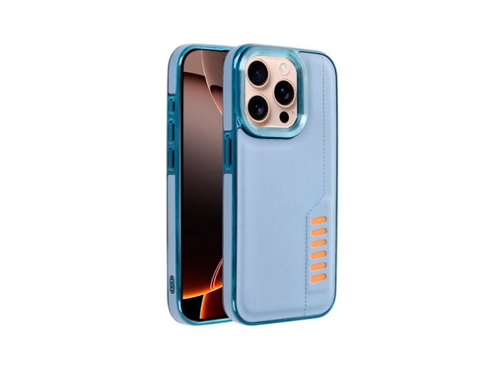 Cool Iphone 16 Pro Max Case Milano Blue Leatherette/Raised Edges/Wireless Charging 8434847076041