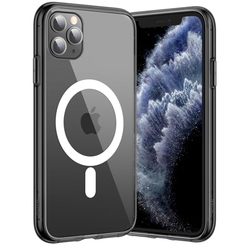 JETech Magnetisk Skal för iPhone 11 Pro 5,8 Tum för MagSafe Trådlös Laddning, Stötskyddad Telefon Bumper Case, Repfri Klar Tillbaka (Klar)