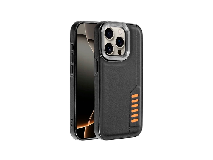 Cool Iphone 16 Pro Milano Case, Black Leatherette/Raised Edges/Wireless Charging 8434847076034
