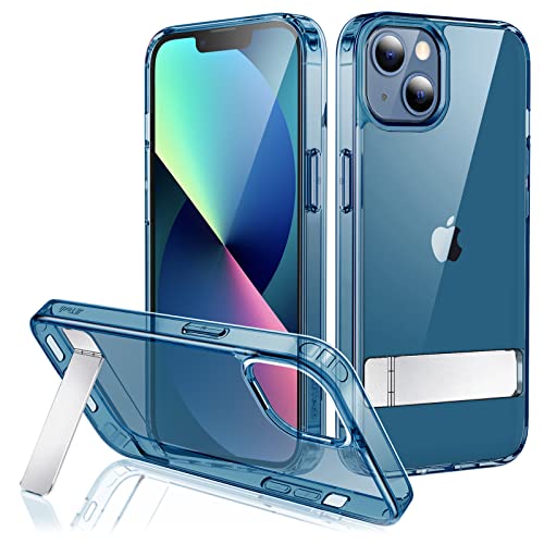 JETech Stativ Skal för iPhone 13, 6,1 Tum, Stöd Trådlös Charging, Smal Stötskyddad Bumper Telefon Case, 3-Vägs Stativ i Metall (Klar)