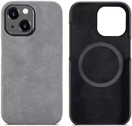 TYXDKJ Alcantara Case for iPhone 14, Handmade Half-Wrapped Synthetic Suede Cover, Compatible with Magsafe Wireless Charging (Gray)